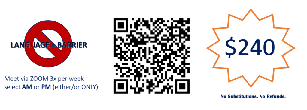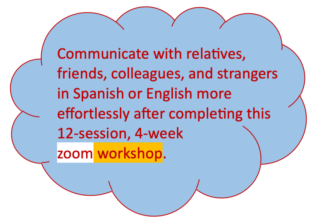 This is a zoom workshop built to help folks overcome language barriers imposed by Spanish, English and Polish languages (#spangielski). The sessions include one 30-minute lecture portion where we will review notes for that session, followed by one 30-minute interactive practice portion during which each participant will be alloted about 3 minutes for questions and clarifications.